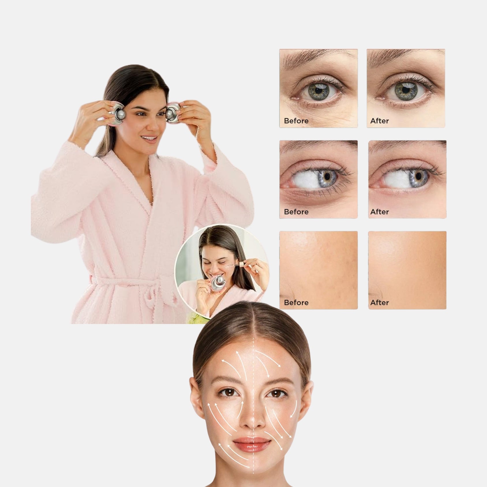 This precision-engineered facial roller targets under-eye puffiness through gentle lymphatic drainage. Crafted from high-quality materials, it effectively reduces inflammation while stimulating circulation to minimize dark circles. Regular use helps tighten skin, enhance product absorption, and provide a refreshed, well-rested appearance. Ideal for incorporating into both morning and evening skincare routines.