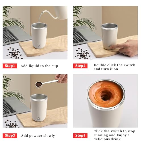 Tasse Auto-Mélangeuse Magnétique USB – Mug Inox Rechargeable avec Agitation Automatique – Pour Café, Boissons Protéinées, Lait – Portable, Étanche, Cadeau Original